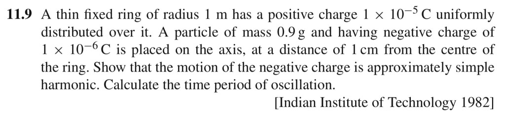This topic comes up a lot. Make sure you are familiar with the formulae for electrostatics, and possibly SHM and binomial approximation. All Non-BPhO questions come from 1000 Solved Problems in Classical Physics by Kamal. Any concerns, leave a comment.