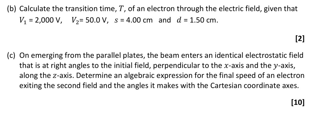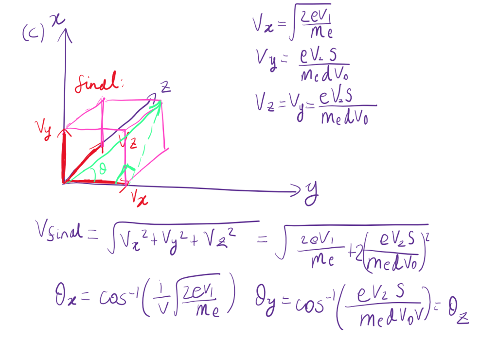 Hint Part (c): upon entering the final field, the z component of the velocity is zero, which means…